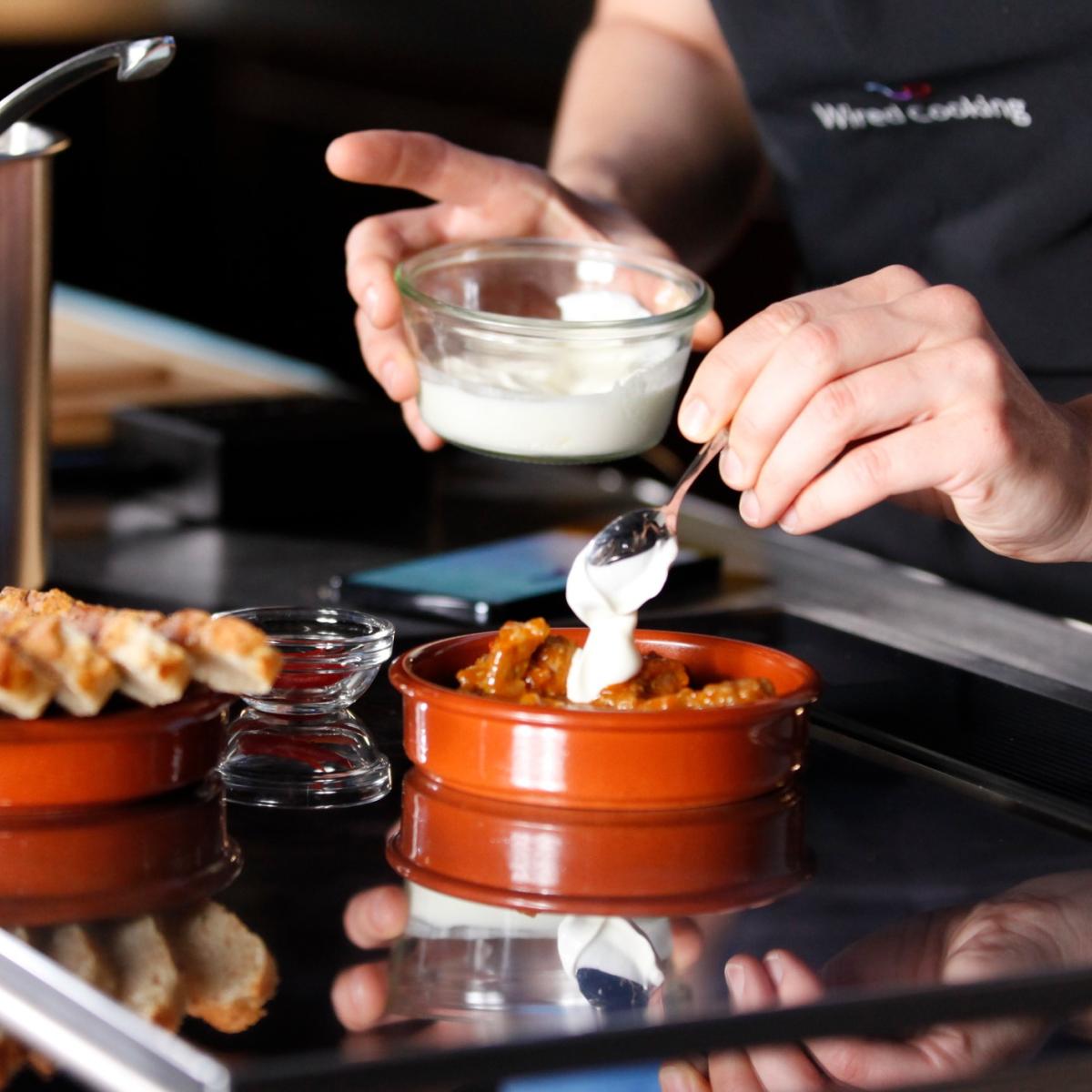 - Ablöschen und Schmoren: Mit Brühe, Wein oder Sauce ablöschen. Deckel schließen. Der Wired Cooker hält die gewählte Temperatur über die gesamte Garzeit konstant.