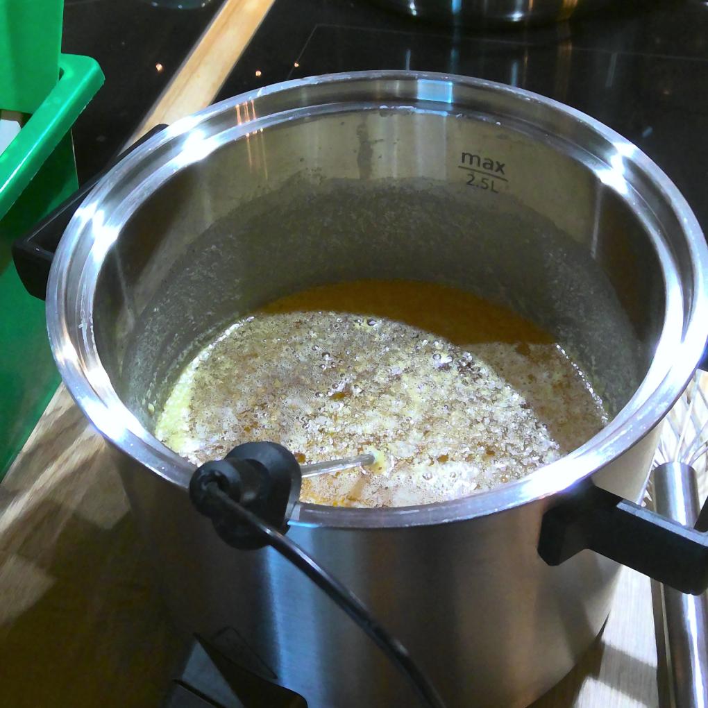 Butter in den Topf geben, Programm starten. Während dem Einkochen ab und zu den Eiweiss-Schaum abschöpfen. Im 2. Schritt wird die flüssige Butter eine Weile warm gehalten, um sie z.B. abfüllen zu können.