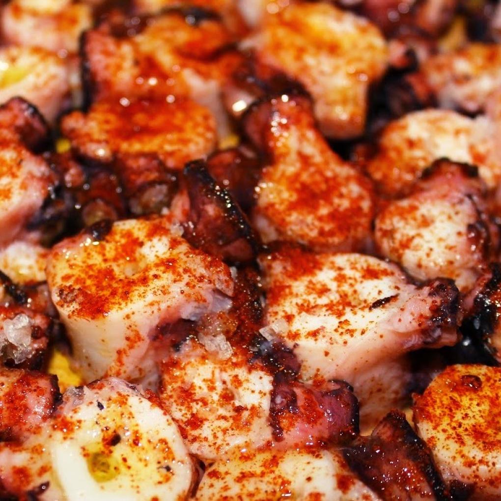 Den Sand aus den Saugnäpfen entfernen, den Octopus mehrfach einige Sekunden im siedenden Wasser abschrecken ('asustar'), evtl. Salz und Loorberblätter beigeben. Bei 80 °C etwa eine Stunde ziehen lassen -- nicht sieden, das lässt ihn zäh werden.