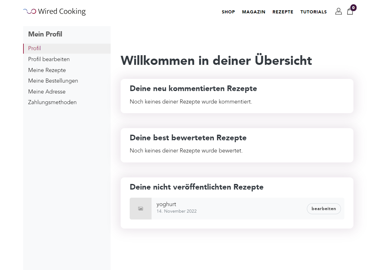 Wenn du dich dann mit deinem Login anmeldest, erhältst du eine Übersicht, ob sich etwas bei deinen eigenen Rezepten verändert hat: