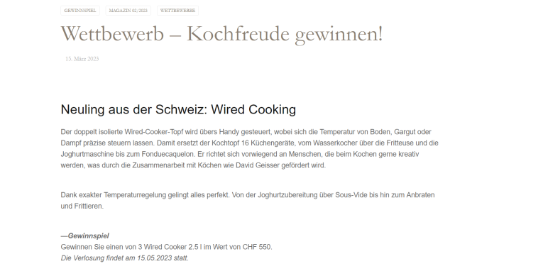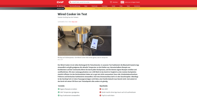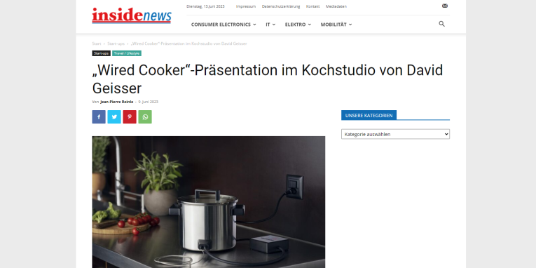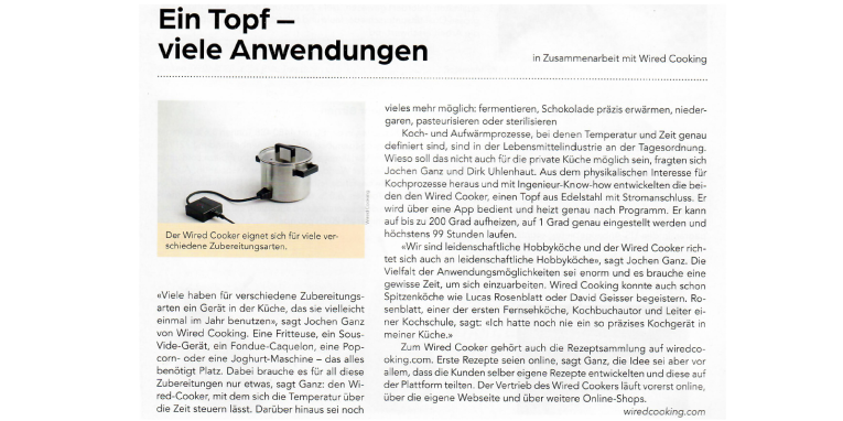 David Geisser ist lange schon ein begeisterter Anwender des Wired Cookers, und benutzt diesen immer wieder in seiner Kochsendung 'Choche & Gnüsse' mit David Molnar.