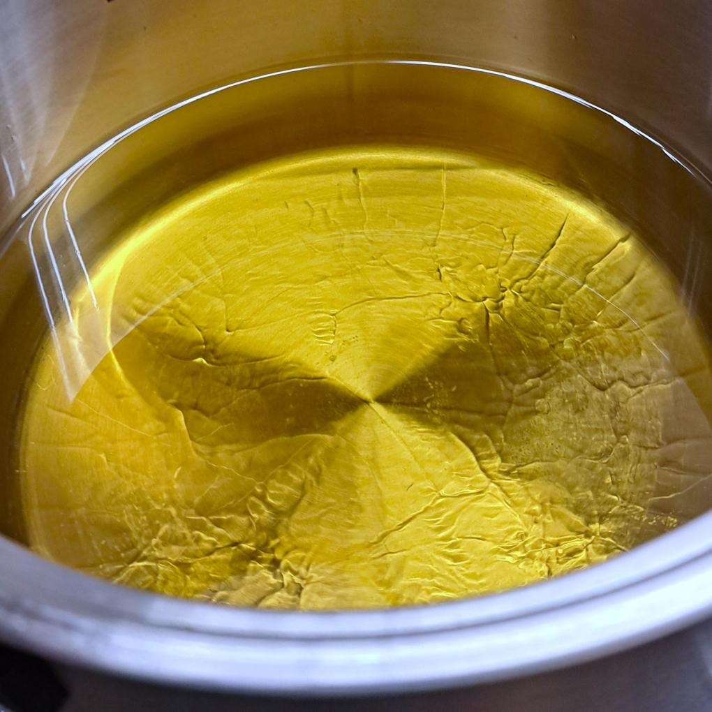 Öl auf genau 60°C erhitzen (Gargutfühler verwenden! Das Rezept ist auf 66 °C Boden eingestellt, was in etwa in derselben Temperatur resultiert). Währenddessen Orange schälen und die Schalenstücke zusammen mit dem Dill und dem Schnittlauch in einen Standmixer geben. Öl nun darübergeben und glattmixen. Durch ein feines Haarsieb in einen Behälter langsam passieren lassen (ohne Druck). Möglichst schnell abkühlen.