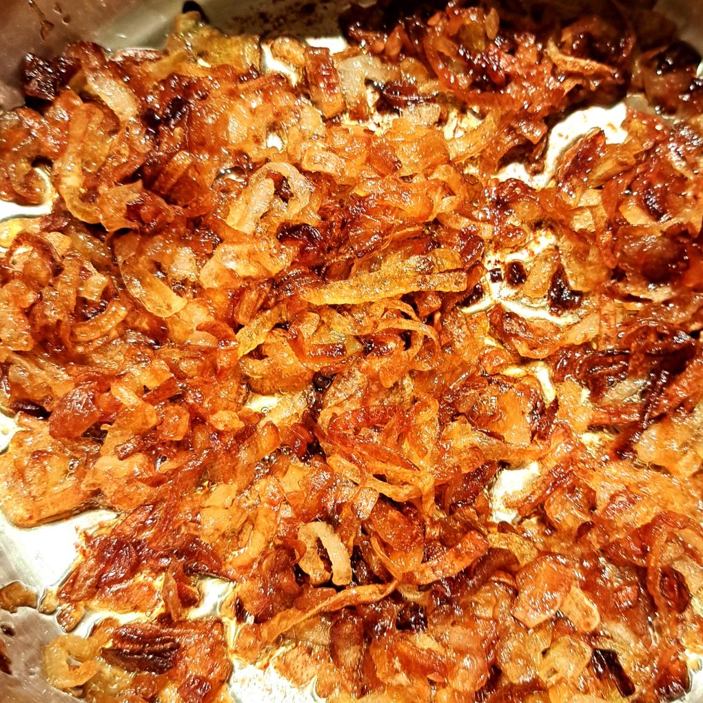 Zwiebeln mit dem Öl rösten, bis sie gut durchgeröstet sind. Mit Weisswein und Bouillon ablöschen und aufkochen.