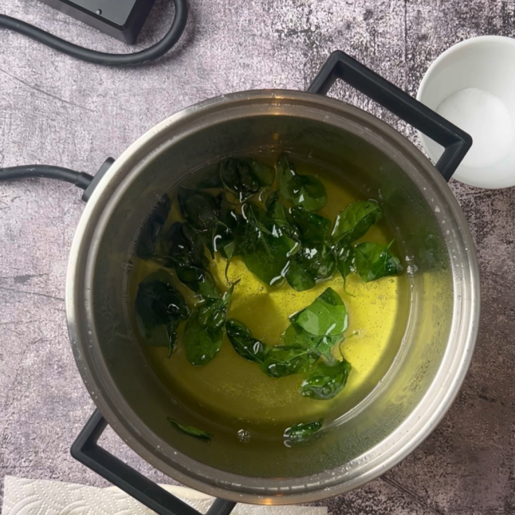 Knusprig frittierte Kräuter ergänzen nicht nur den Geschmack, sondern auch die Textur - was für ein rundes Geschmackserlebnis unheimlich wichtig ist. Hier beschreiben wir den Prozess für Salbei, es können aber auch andere Kräuter verwendet werden.