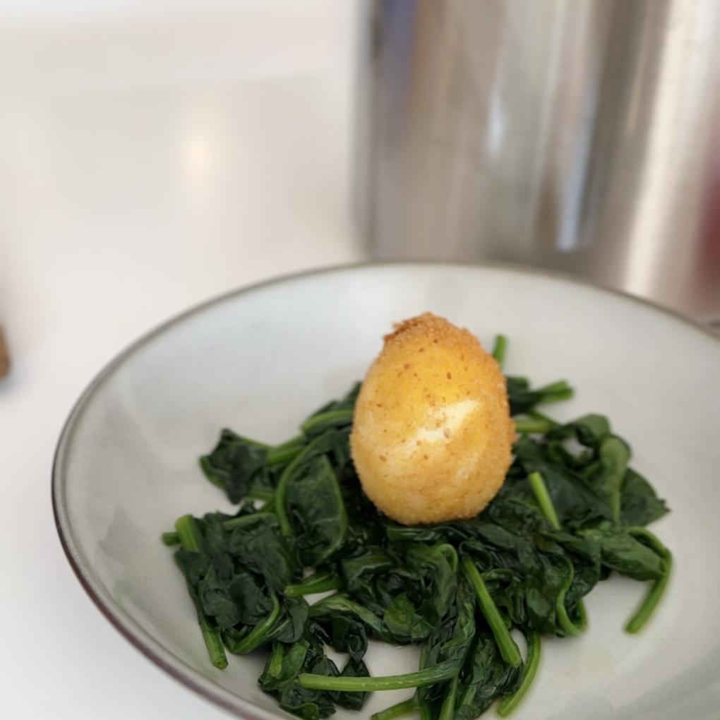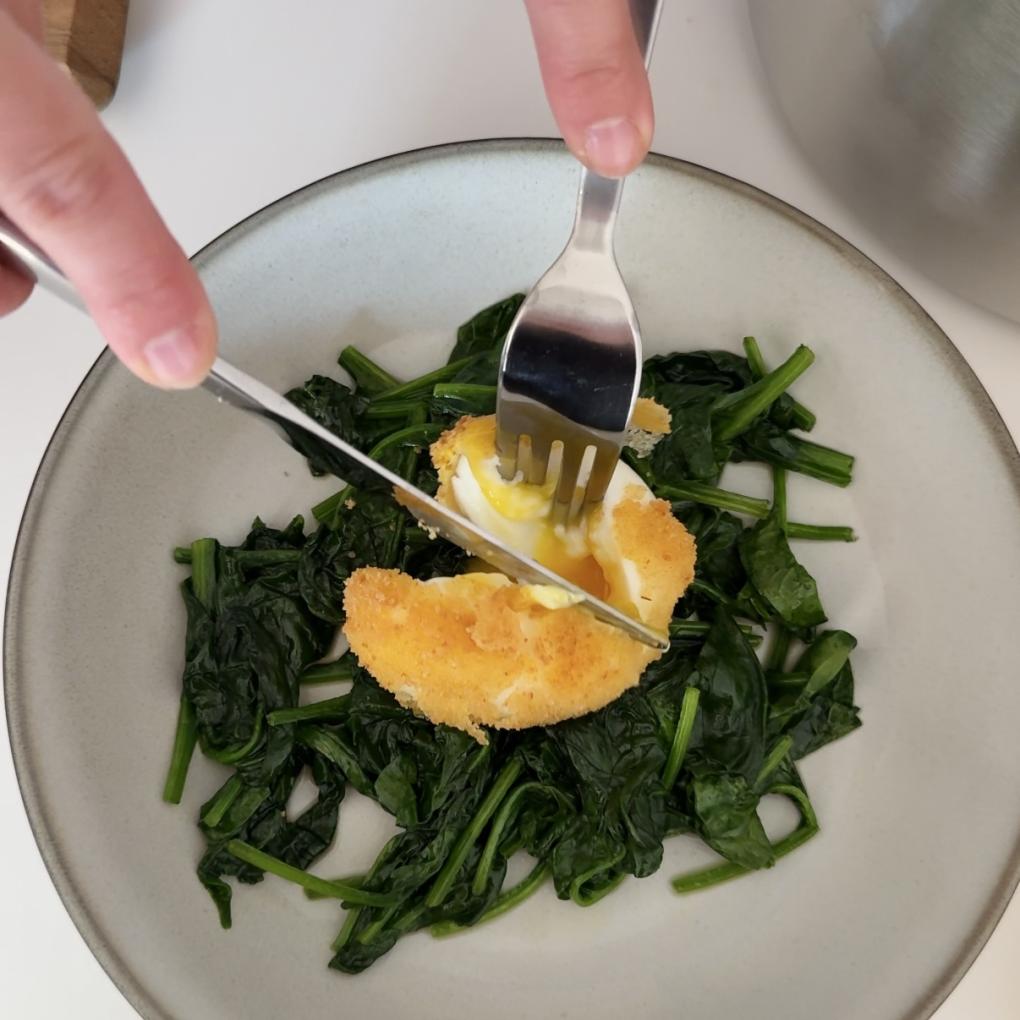 - Panierte Eier bei 200 Grad in der Wired Cooking Fritteuse Funktion goldgelb backen.
