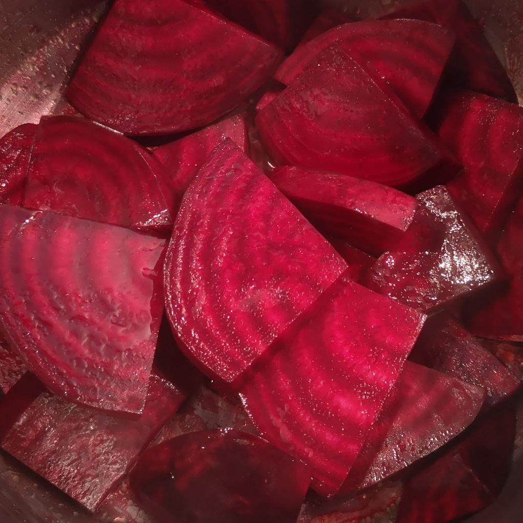 Randen schälen und schneiden. Mit Öl und etwas Salz bei 130 °C Bodentemperatur 30 Minuten mit geschlossenem Deckel Dünsten, gelegentlich umrühren.