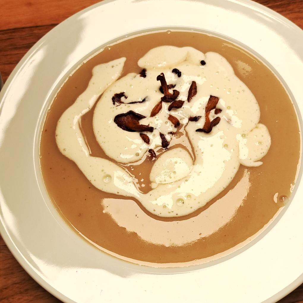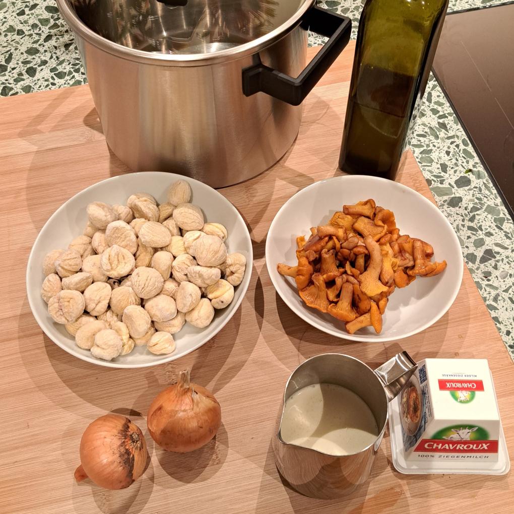 Marroni haben ein wunderbares Aroma, das sehr gut mit Ziegenfrischkäse harmoniert. Die frittierten Pilze als Topping ist eine bereichernde Ergänzung.