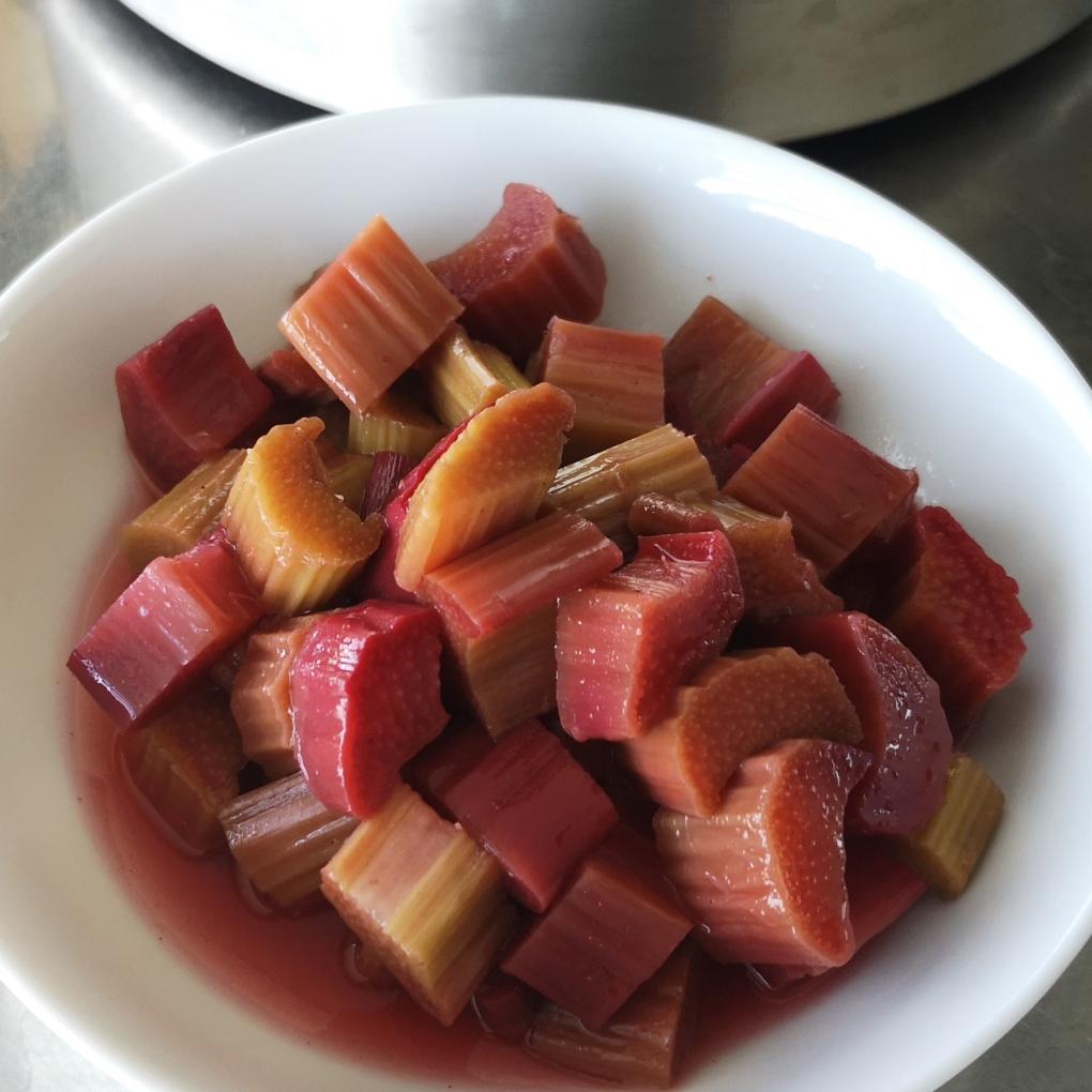 Die Rhabarberstücke sind nach der Zubereitung noch leicht bissfest.