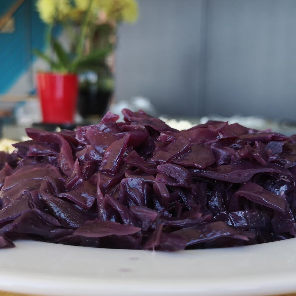 Im Wired Cooker kann in diesem Rezept auf Flüssigkeitszugabe verzichtet werden. Das erlaubt ein Rotkraut zuzubereiten, das nicht im eigenen Saft schwimmt und dennoch gut gegart ist.