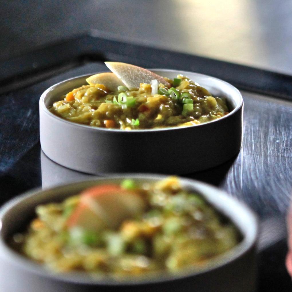 Warmhalten und abschmecken, sowie die Kokosnussmilch unter das Kraut rühren.